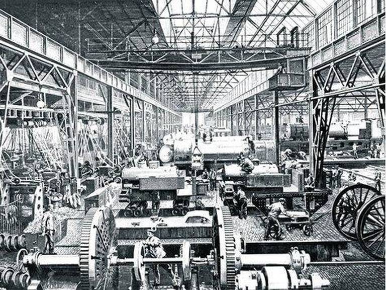 © Stadtmuseum - Riesige Halle: Die Aufnahme zeigt die Lokomotivwerkstatt von Henschel an der Holländischen Straße im Jahr 1910. |