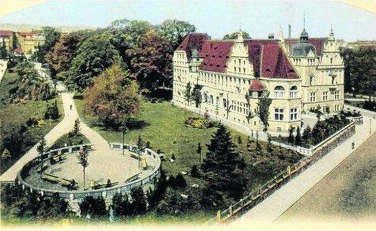 Berühmte Stiftung: Die Murhardsche-Bibliothek auf einer historischen Postkarte aus der Zeit um 1900. Der Blick zeigt die Ansicht vom Weinberg auf die rückwärtige Seite des Gebäudes mit dem angrenzenden Fürstengarten. Archivfoto: nh |