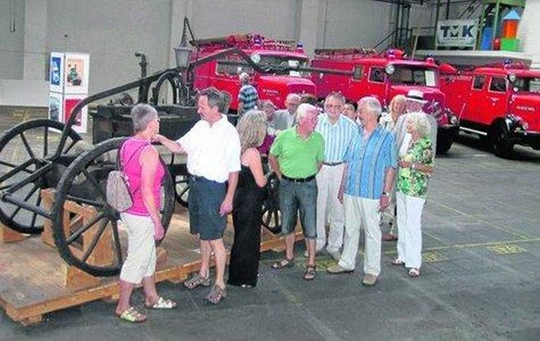 Großes Interesse: Wenn das Technik-Museum seine Tore öffnet, dessen Eingang sich jetzt in der Wolfhager Straße 109 Ecke Brandaustraße befindet, lassen die Besucher nicht lange auf sich warten. Elke und Bernd Hoffmann aus Oberkaufungen (von links) und weitere Gäste schauen sich die Feuerspritze von 1805 näher an. Fotos: Wienecke |