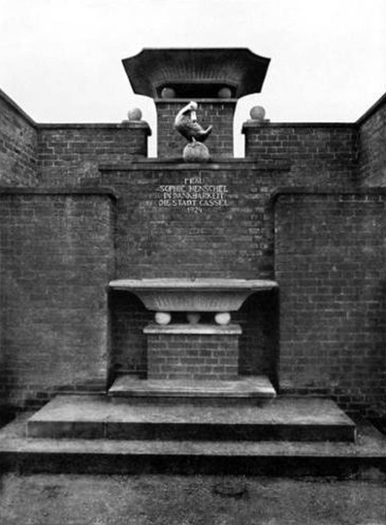 Ursprünglich gab es hier eine Inschrift und mehrere Schalen, in die das Wasser floss. An dem 1924 fertiggestellten Brunnen war zu lesen: „Frau Sophie Henschel. In Dankbarkeit. Die Stadt Kassel 1924.“ Diese Inschrift ist ebenso wie die Schalen nach dem Krieg verschwunden und in Vergessenheit geraten.