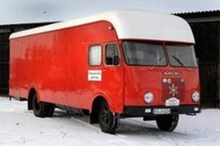 Seit 2011 besitzt der gelernte Maschinenschlosser einen HS 12, Baujahr 1966. „Eine echte Rarität, denn dieses Fahrzeug gibt es nur noch zweimal in der Ausführung als Möbelwagen auf der ganzen Welt“, schwärmt Schäfer, der auch die Geschichte seines 150 PS starken Oldtimers kennt.